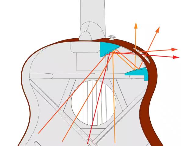 Le gabarit propriétaire "Advanced Auditorium" est une version remaniée de l'Auditorium traditionnel, avec des hanches sensiblement plus larges et recentrées vers le manche. En résultent des fréquences bas-médium plus riches et un meilleur équilibre postural.