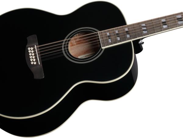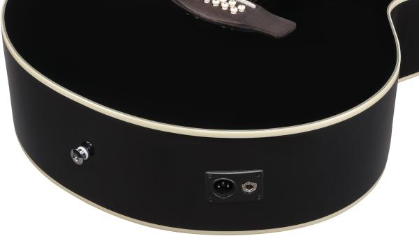 Constituée d'une table en Epicéa Sitka massif, d'un duo fond/éclisses en Okoume laminé et d'une touche en Laurier, l'IBANEZ AEG Series AJ7012M1E BK est une guitare folk électro-acoustique douze cordes de type jumbo. Elle assure "unplugged", mais peu également s'avérer très pratique sur scène ou en studio grâce à son pré-ampli Ibanez AEQ-TP2 intuitif avec accordeur intégré.
