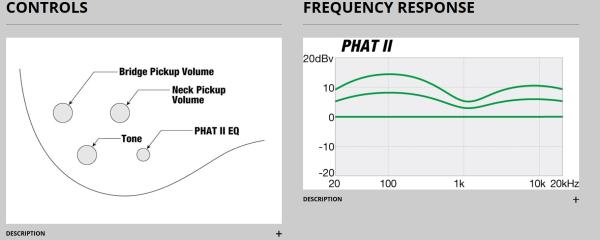 Corps en Okoume, manche vissé en Erable, touche Purpleheart, 22 frettes, micros Ibanez Dynamix PJ, préamp actif Ibanez.