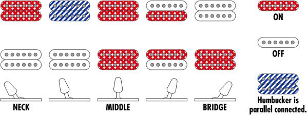 - Micros double-bobinage DiMarzio® PAF® 7 pickups (passifs, aimants céramique)