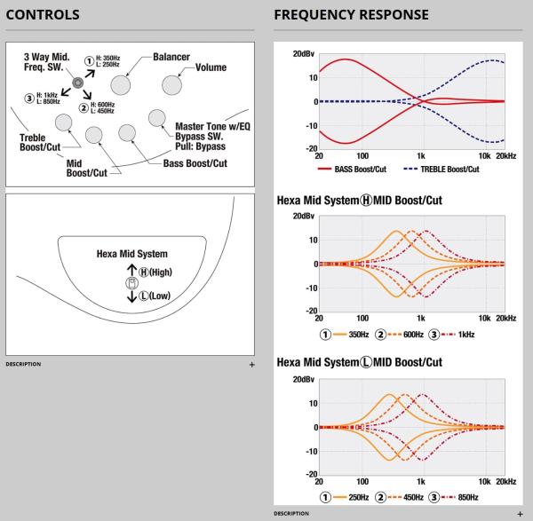 - Ibanez Sonitech Preamp 3-band EQ w/EQ bypass switch (push/pull), 3-way Mid frequency switch w/Hexa Mid system