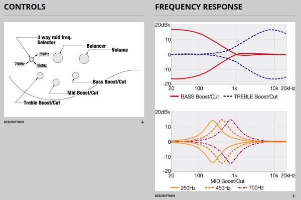 - Ibanez Custom Electronics 3-band EQ w/ 3-way Mid frequency switch