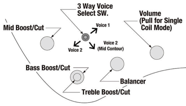 - Préamp Fishman 3-band EQ w/Single Coil Mode switch (push/pull), 3-way Voice Select switch