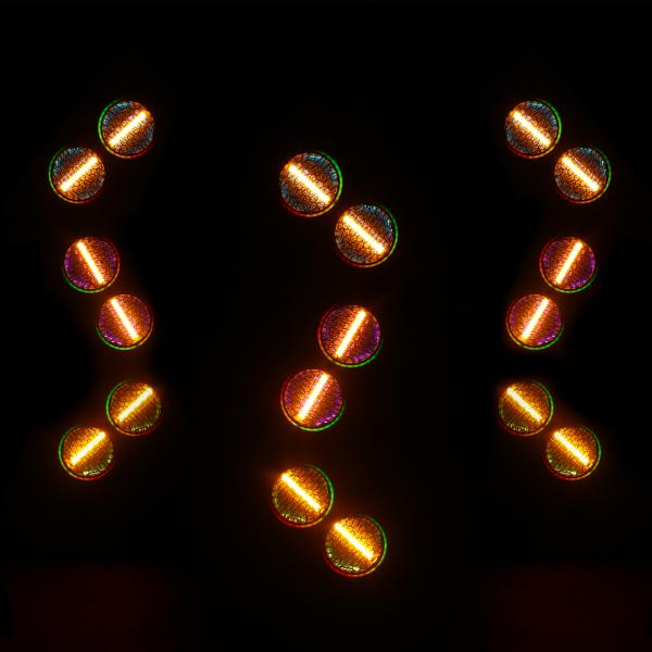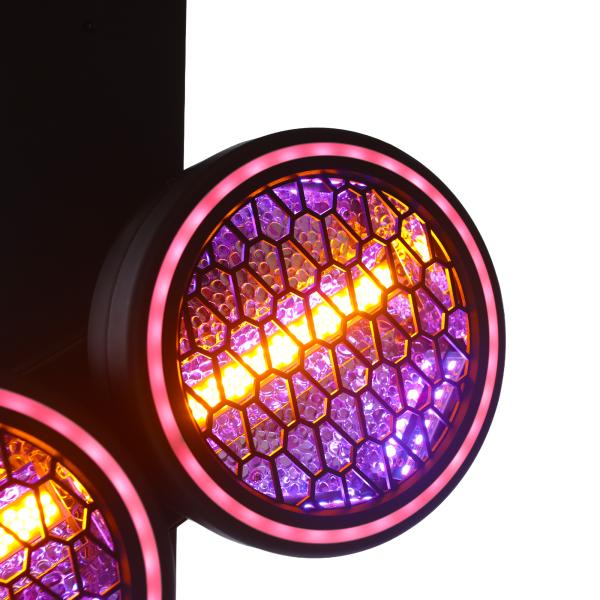 Il associe une source principale COB puissante à un système d’éclairage secondaire RGB, permettant de mixer effets lumineux intenses et animations colorées dynamiques pour un rendu à la fois scénique et décoratif .