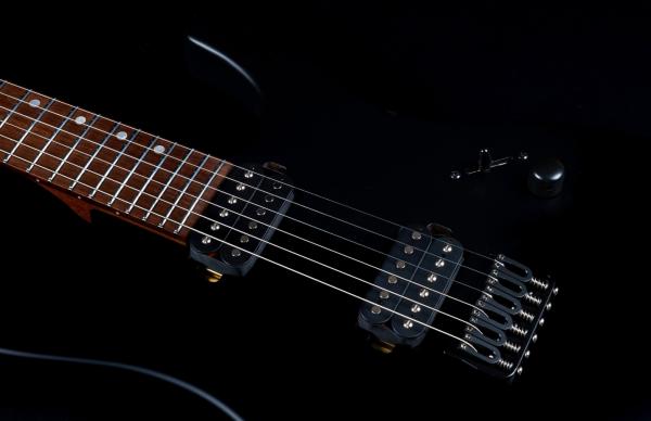 Dans cette configuration, équipée d'un duo de micros double-bobinage bobinés à la main (plus réactifs et organiques) avec aimants AlNiCo et un chevalet fixe, elle est parfaite pour les musiciens qui cherchent une guitare dynamique et expressive avec un appétence pour les sonorités Hard/Metal.