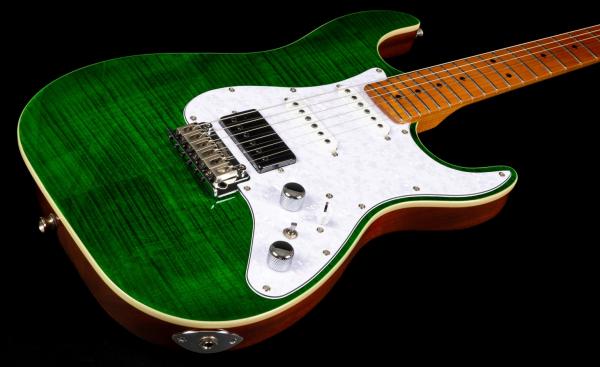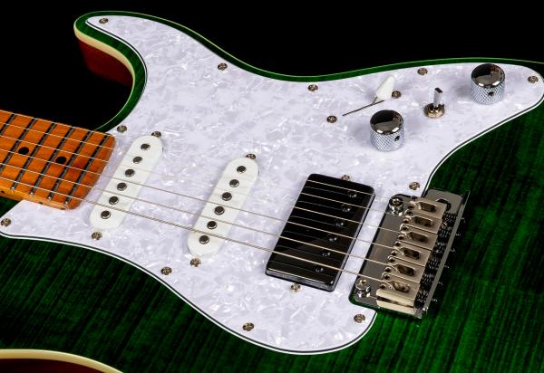 Dans cette configuration avec un set de micro HSS et une touche en Erable, elle est parfaite pour les musiciens qui cherchent un instrument polyvalent capable de produire des sons clairs cristallins comme des saturations de type Hard/Metal.