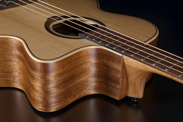 C'est une basse compacte avec pan coupé et diapason court dotée d'une table massive en Cèdre, d'une caisse et d'un manche en Khaya et d'une touche en Brown Brankowood.