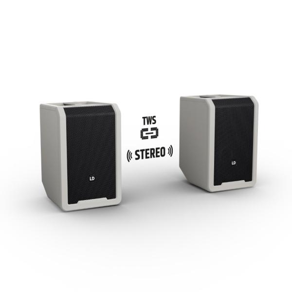 Pour une polyvalence accrue, la technologie True Wireless Stereo (TWS) vous permet de connecter deux enceintes ANNY® 8 pour profiter de votre musique en stéréo – une mise à niveau rapide qui crée une solution audio impressionnante pour les fêtes et événements.