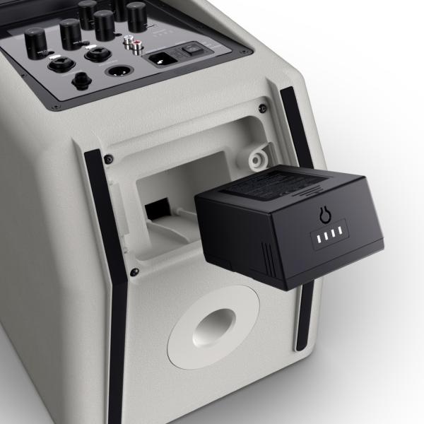Grâce au préréglage ECO économe en énergie, l'ANNY® offre une autonomie particulièrement longue pour la musique d'ambiance ou les applications vocales. À volume moyen, ce mode permet un fonctionnement continu jusqu'à 11 heures. Pour une soirée à volume maximal avec le préréglage MUSIC, la batterie offre une autonomie impressionnante de 3,5 heures à pleine capacité. Vous pouvez prolonger l'autonomie grâce à la batterie de secours disponible en option ; il suffit de remplacer la batterie vide par une batterie complètement chargée et vous êtes prêt à continuer.