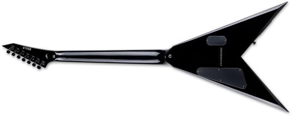 La LTD Jack Simmons JS-7 Baritone est donc son modèle signature. C'est une guitare électrique solid body sept cordes avec diapason baryton dédiée aux grosses saturations modernes. Elle est élaborée autour d'un design en V, avec une construction de type manche traversant (trois pièces Erable avec ailes en Acajou). La touche en Ebène Macassar est sertie de 24 frettes en acier inoxydable.