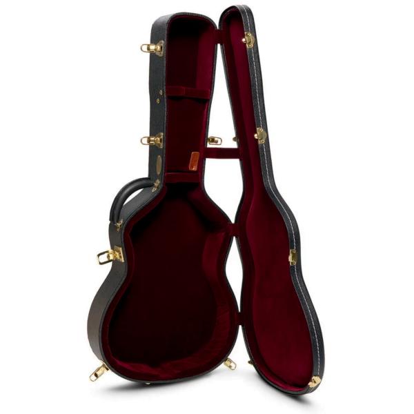 Elle est constituée d'essences massives de qualité premium (table Epicéa Adirondack, barrages Authentic 1937 forward shifted hand-scalloped X en Epicéa Adirondack, fond/éclisses Palissandre d'Inde orientale, manche Acajou, touche Ebène), et agrémentée d'une finition Vintage Gloss Aging Toner qui lui confère un aspect vintage absolument réaliste.