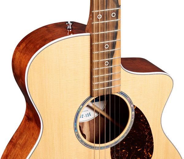 Augmentée de finitions inspirées des Martin de la 28 Series, la MARTIN Road Series SC-13E Modern (Natural) est une attractive guitare folk électro-acoustique de gabarit compact avec diapason court. Elle est constituée d'Epicéa massif (table d'harmonie), de Koa (dos, éclisses), avec un manche en Acajou et une touche en Ebène.