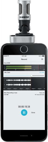 Le Shure MV88 Motiv est un micro qui se branche directement aux smartphones et tablettes iOS via le connecteur Lightning. Ce micro numérique de qualité studio est équipé d'un système d'articulation à 90° et grâce à l'application gratuite ShurePlus Motiv vous offre 5 presets, des réglages de gain, directivité et égalisation.