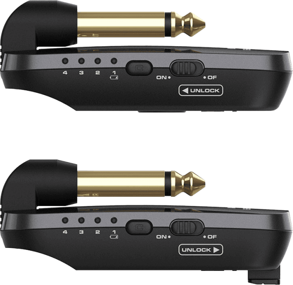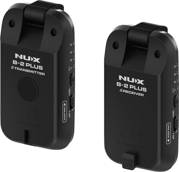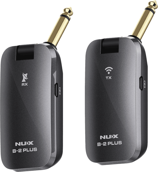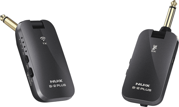 Spécialement conçu pour les guitaristes désireux de se libérer de la contrainte que représente un câble, le Nux B2-Plus est un système de transmission numérique sans-fil haute-fidélité parfait pour un usage domestique ou en studio. L'émetteur et le récepteur sont équipés d'une batterie li-ion à haute capacité, conférant à l'ensemble jusqu'à 20h d'autonomie, ou 7h dans le cadre d'un jeu continu (contre 6h pour le B2). Le B2-Plus dispose d’un mode Auto Sleep pour un arrêt automatique afin d’économie l’énergie des batteries. Le chargement des modules peut être réalisé via un câble USB fourni, tout en couplant l'émetteur et le récepteur grâce au petit système d'accroche au dos. La conception très astucieuse du B2-Plus lui permet de se monter sans difficulté aussi bien sur des instruments type Strat disposant d'une entrée jack en retrait et d'un vibrato, que sur des modèles type Les Paul à prise jack traditionnelle.
