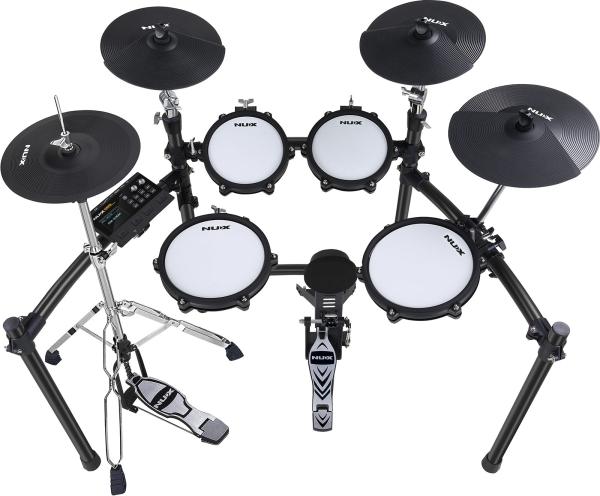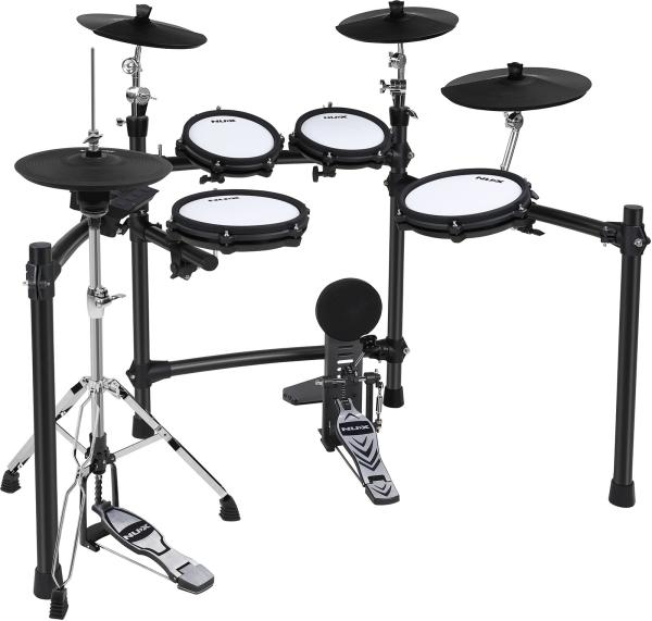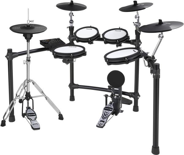 Les pads de grand diamètre, notamment la caisse claire, la cymbale ride et le tom basse, améliorent à la fois la surface de frappe et la lisibilité scénique. Cette conception optimise la cinématique du geste, réduit les frappes parasites et assure une réponse homogène sur l’ensemble des zones de jeu.
