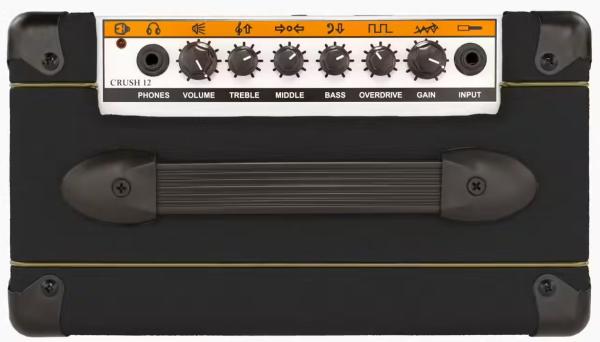 ORANGE Crush 12 Combo (Black), ampli guitare électrique 12 watts transistors, 1x hp de 6", 1x canal, contrôle Overdrive, entrée auxilliare et une prise casque avec simulation de baffle.