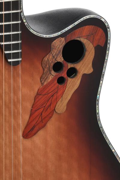 Le traitement du signal électroacoustique débute avec un micro Ovation Slimline au chevalet de la guitare, qui se distingue par sa forme étroite. Le chevalet cranté permet d'augmenter le point de pression sur les cristaux piézoélectriques, favorisant une sonorité particulièrement régulière. Avant de sortir de la guitare, le signal est une fois de plus affiné grâce à un préampli Ovation OP4BT avec égaliseur 3 bandes et un accordeur intégré.