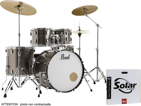 Le côté vraiment sympathique de ce kit, c’est qu’il ne manque rien pour commencer à s’éclater ! Les fûts, les accessoires à double embase ainsi qu’un pied perche supplémentaire (eux aussi considérés comme offrant un très bon rapport qualité/prix sur un marché pourtant concurrentiel), le siège, les cymbales Solar Sabian (des charlestons, une ride et une crash qui permettront de prendre ses premiers repères), et même le sac avec les baguettes... Tout est fourni. Ce kit offre en plus de la version standard un pied perche B-50 et une ride supplémentaire pour obtenir le kit parfait pour débuter la batterie. Alors honnêtement, à ce prix-là, on se dit que les jeunes d’aujourd’hui ont décidément beaucoup de chance !