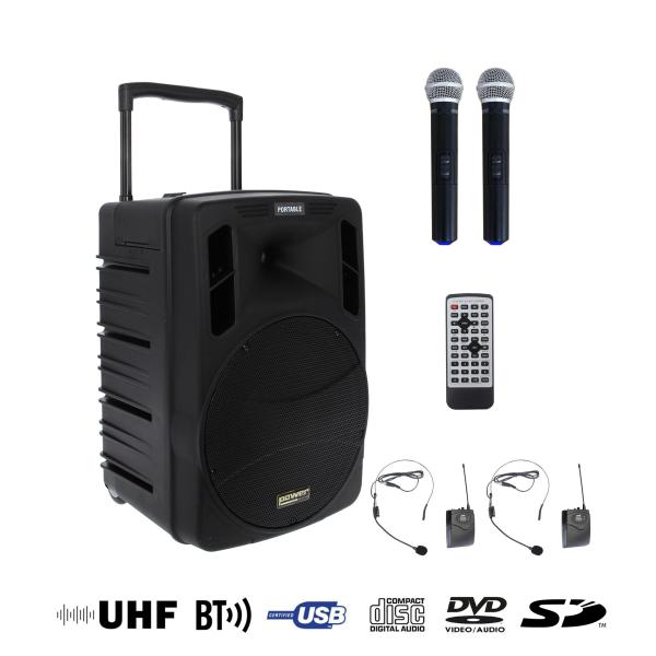 Il est assez difficile d’obtenir de fortes puissances tout en conservant une autonomie importante. Avec la BE 9412 PT CD G2, Power Acoustics a intégré une batterie ultra puissante afin de pouvoir réussir ce défi. Cette nouvelle sono portable est très puissante (250W), complète et compacte, permettant ainsi de sonoriser tout type de conférences, discours ou présentations diverses.