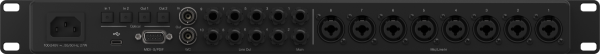 Livré avec : Câble épanoui DB-9 (pour les entrées/sorties MIDI et S/PDIF), câble USB-C vers USB-C de 1,5 mètre, cordon d'alimentation IEC