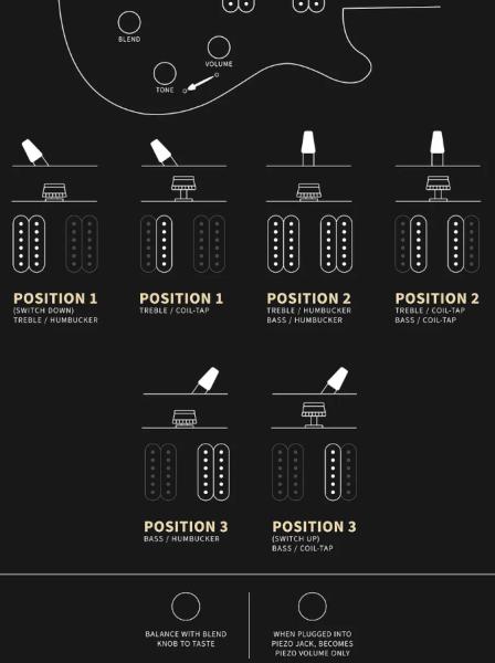 - Blend micros magnétiques / piezo (ou volume piezo si utilisation de la sortie piezo dédiée)