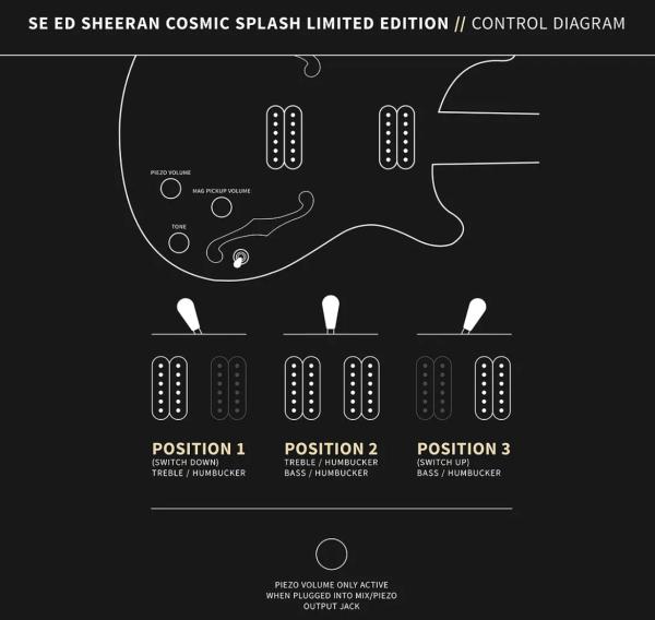 Ornée du design Cosmic Splash imaginé par ultra populaire auteur-compositeur-interprète et guitariste anglais, la PRS Limited Edition SE Ed Sheeran Hollowbody I Piezo Baritone est une variante de la Custom 24 originale qui ne manque pas de sex-appeal.