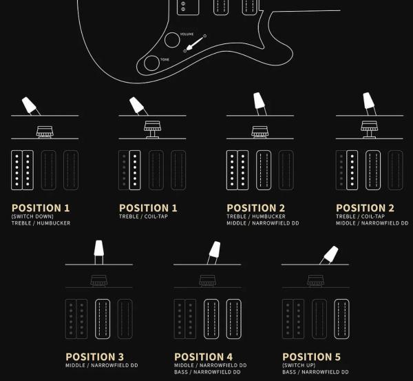Cette remarquable guitare électrique solid body, hybride entre une Custom 24 et une Classic Electric, offre une vaste collection de sonorités grâce à la flexibilité de son trio de micros constitué d'un double-bobinage 58/15 LT "S" et de deux Narrowfield DD S. Ces derniers ont demandé plusieurs mois de travail avant d'aboutir au compromis idéal entre simple et double bobinage.