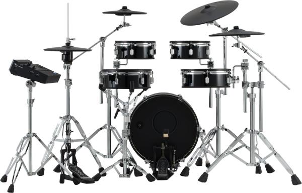- Une V-Drums Acoustic Design à cinq pads à fût en bois de profondeur réduite, dont une grosse caisse de diamètre standard
