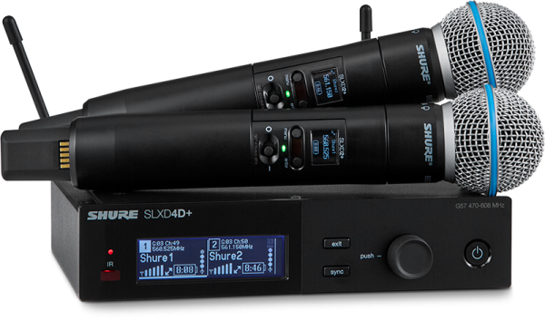 Le SLXD24D+E-Beta 58-G65 est un système sans fil numérique UHF 2 canaux.