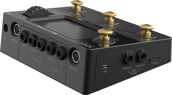 Avec ses 4 confortables commutateurs au pied finition dorés, à conception très silencieuse, l'Aeros gold a été pensé de façon ergonomique et intuitive, le rendant très confortable à utiliser dans toutes les situations. Une roue / molette de défilement intégrée vous permet de contrôler très facilement les volumes de vos boucles avec le pied et garder ainsi un contrôle total sur votre performance et votre mixage en temps réel grâce à l'écran tactile de 4,3 pouces. L'Aeros est construit dans un châssis en aluminium robuste et une finition noire résistante aux traces pour endurer les sessions studio ou live les plus exigeantes.