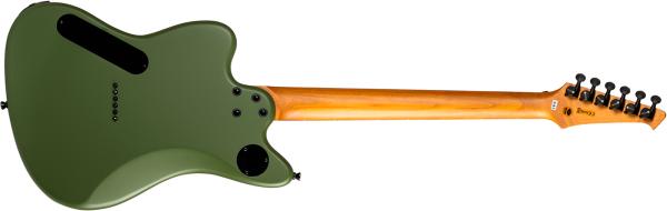 Elle est pourvue d'un corps en Peuplier torréfié, d'un manche vissé en Erable torréfié, d'une touche en Ebène sertie de 24 frettes, de redoutables micros double-bobinage Spira Villain avec aimants céramique, et d'un chevalet fixe Spira.