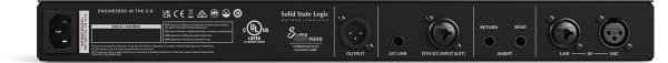 Le Super 9000 comprend un point d'insert symétrique permettant d'intégrer des équipements externes supplémentaires dans le chemin du signal. L'insert peut être repositionné depuis son emplacement par défaut (immédiatement après l'étage d'entrée) vers l'étage de sortie, juste avant le Trim de sortie. Il dispose également d'une entrée sidechain (key) externe dédiée, d'un réordonnancement flexible du traitement et d'une liaison sidechain, ce qui est idéal lorsque deux unités Super 9000 sont utilisées en paire stéréo.