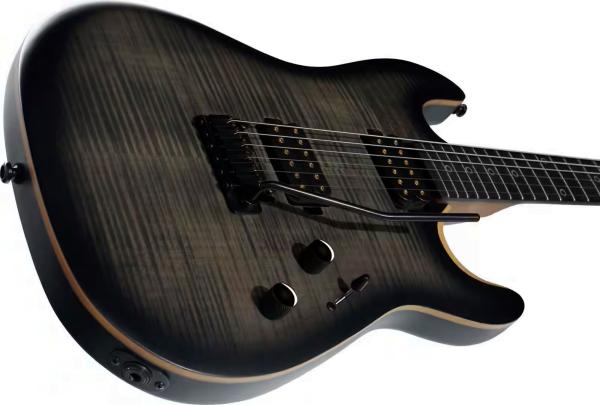 C'est une très belle guitare électrique solid body pourvue d'une caisse ergonomique en Nyatoh avec table Erable flammé, d'un manche vissé en Erable torréfié, d'une touche 22 frettes (acier inoxydable) en Ebène, d'un duo de micros double-bobinage Sterling By Music Man Alnico V Humbuckers et d'un vibrato traditionnel haute précision.