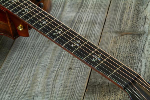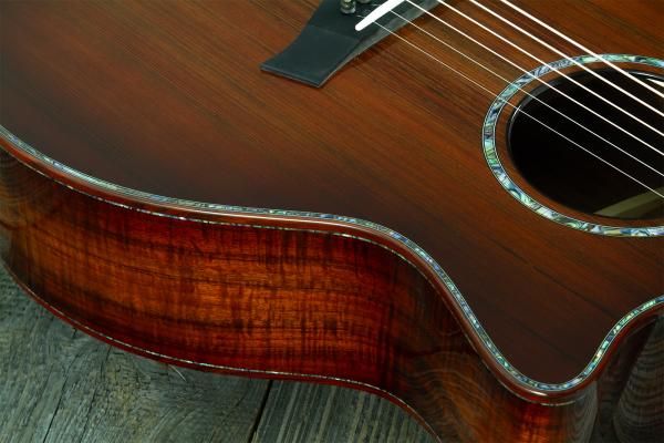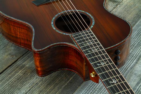 Cette guitare folk électro-acoustique de type Grand Auditorium avec pan coupé est constituée d'une table en Sinker Redwood, d'un combo dos/éclisses en Koa d'Hawaï, d'un manche en Acajou et d'une touche en Ebène.