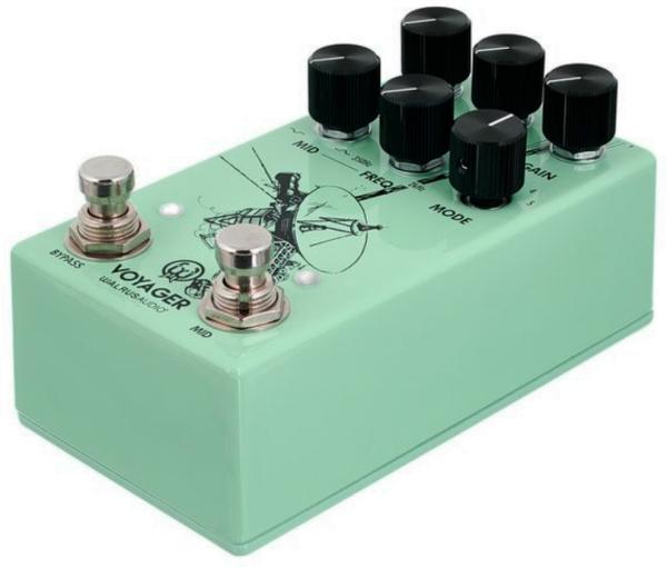 La boutique-pedal WALRUS AUDIO Voyager Preamp/Overdrive MKII (Seafoam) est une overdrive mid-gain haut gamme inspirée de la légendaire Klon Centaur. Evolution de la Voyager originale, elle sublime le circuit traditionnel grâce à l'adjonction d'un circuit de médiums paramétriques commutables (interrupteur au pied dédié), avec une plage de boost/cut de +/-12 dB.