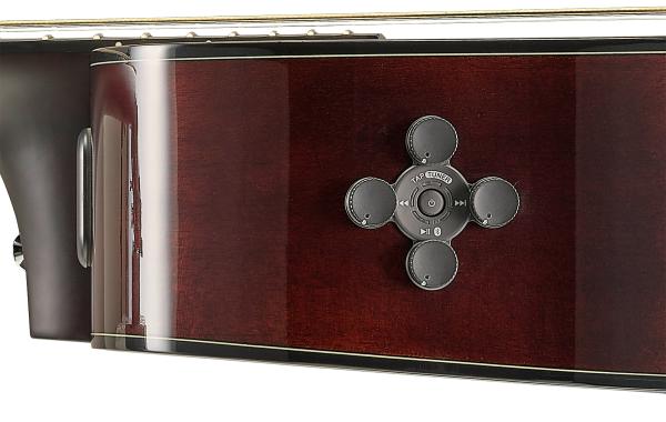 Deux transducteurs installés sur la surface intérieure de la guitare réagissent en réponse aux vibrations des cordes. Les vibrations mécaniques générées par les transducteurs sont redirigées vers la caisse qui entre en résonance, produisant d'authentiques sons de réverbération, de chorus et de délai. Grâce à l'application dédiée vous pourrez en ajuster facilement les paramètres depuis votre smartphone.