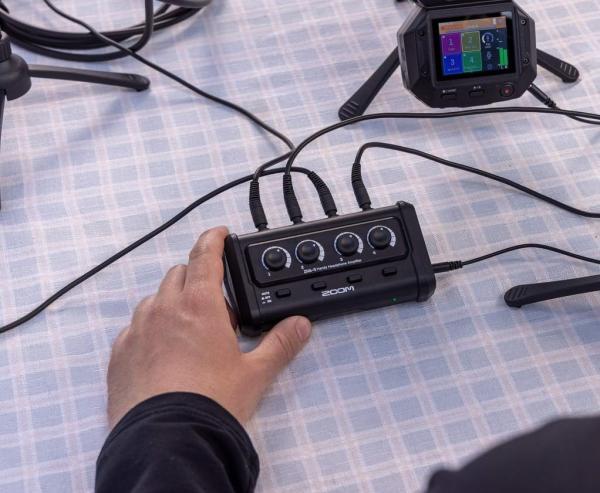 Le ZHA-4 est un amplificateur portable pour 4 casques stéréo - 4x sorties mini-jack 3,5 mm, chacune asservie à un potentiomètre de volume et un interrupteur de coupure (Mute).